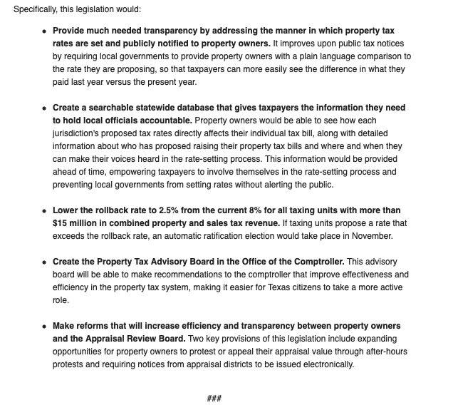 From some of the things that happened last session, they are already on the way to that status. SB2 & HB2 only will worsen this, if the total exemption of ‘small govt entities’ is left in place. Last session, they did precisely that in dealing with forced annexations, exempting smaller counties from protections for property owners. Other past bills have had similar ‘rural exemptions’, but few have dealt with what is more about basic property rights than ‘uniquely rural’ characteristics needed for governance. And the current SB2/HB2 bills worsen this schism by exempting all government units of revenues below $15 million from anything but the 8% rollback rate.